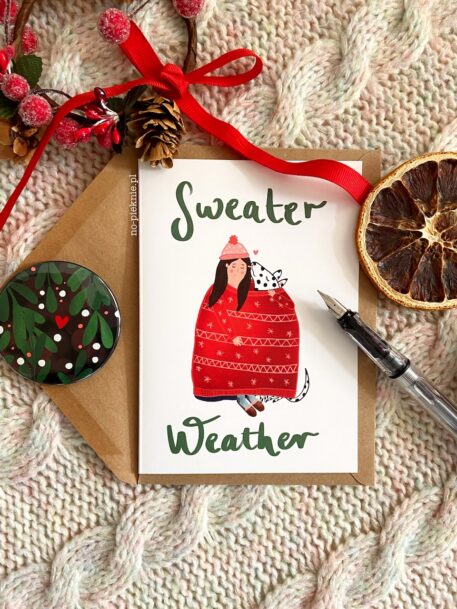 Otwierana kartka A6 z uroczą jesienną ilustracją, czysta w środku, kolorowa z zewnątrz, czeka na wasze długopisy, pióra, kredki i ołówki. Na miłe, pełne miłości i serdeczności słowa i życzenia. Można ją podarować, dołączyć do prezentu albo wysłać tradycyjną pocztą, żeby sprawić komuś przyjemność i wywołać uśmiech na twarzy. Must have każdej jesieniary i wielbicielki psów. Kartka wydrukowana jest na papierze kredowym 350g i powlekana matową folią, w zestawie z eko kopertą, wymiary po złożeniu to 105x148mm. Kartka od początku do końca powstała w Polsce.